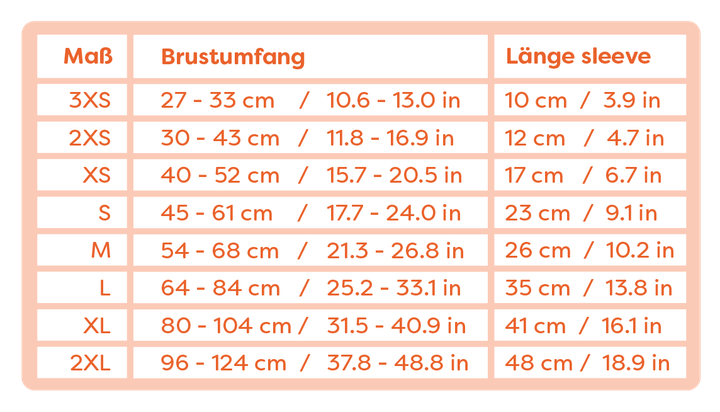 Vergleichen Sie die Maße mit der Größentabelle, um die passende Größe zu finden. Fällt Ihr Hund zwischen zwei Größen? Wählen Sie dann immer die kleinere Größe. Berücksichtigen Sie dabei auch immer die Fellmenge und den Körperbau.