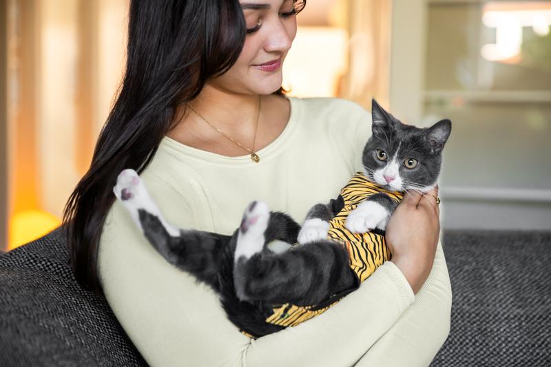Wanneer je kat een medische ingreep heeft ondergaan of last heeft van een gevoelige huid, wil je natuurlijk dat hij of zij zo snel mogelijk comfortabel kan herstellen. Veel dierenartsen kiezen ervoor om de Recovery Suit al aan te trekken na een medische ingreep terwijl de kat nog onder narcose is. Dit geeft de kat de kans om, terwijl hij wakker wordt, meteen te wennen aan het shirt. Dit kan een fijne start zijn, maar sommige katten kunnen in eerste instantie wat โbevriezenโ als ze het shirt aanhebben. Dit is helemaal normaal! Geef je kat vooral de tijd om te wennen aan deze nieuwe situatie, dus doe hem vooral niet meteen weer uit tijdens deze โwenperiodeโ.