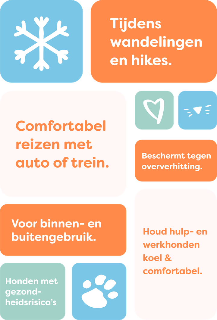 Het is belangrijk dat het DRY® Cooling Vest goed aansluit op de huid rond de rug en buik van je hond. Zonder direct contact vindt er geen effectieve koeling plaats. Let er echter op dat het vest niet te strak zit, zodat je hond vrij kan ademen en comfortabel blijft.